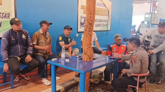 MAKASSAR — Dirum Perumda Parkir Makassar, Rizal Asjahad bersama Tim Reaksi Cepat (TRC) melakukan koordinasi dengan keamanan Indomaret di Jalan Talasalapang, kemarin .