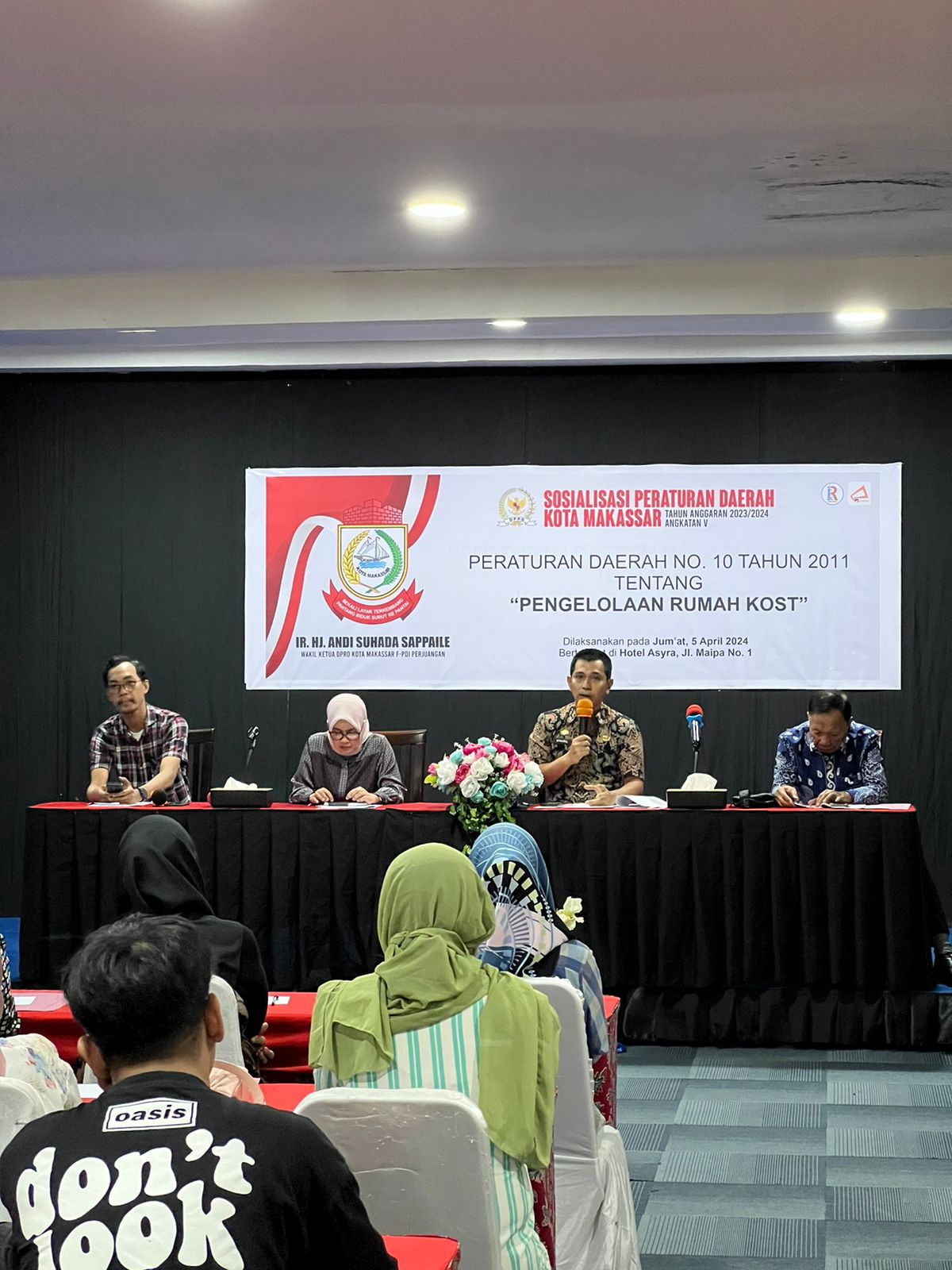 MAKASSAR,portalcelebes.com-Anggota DPRD Kota Makassar, Hj Andi suhada sappaile menggelar sosialisasi peraturan daerah (perda) nomor Nomor 10 Tahun 2011 tentang Pengelolaan Rumah Kost di Hotel Asyra, jumat (05/04/2024).