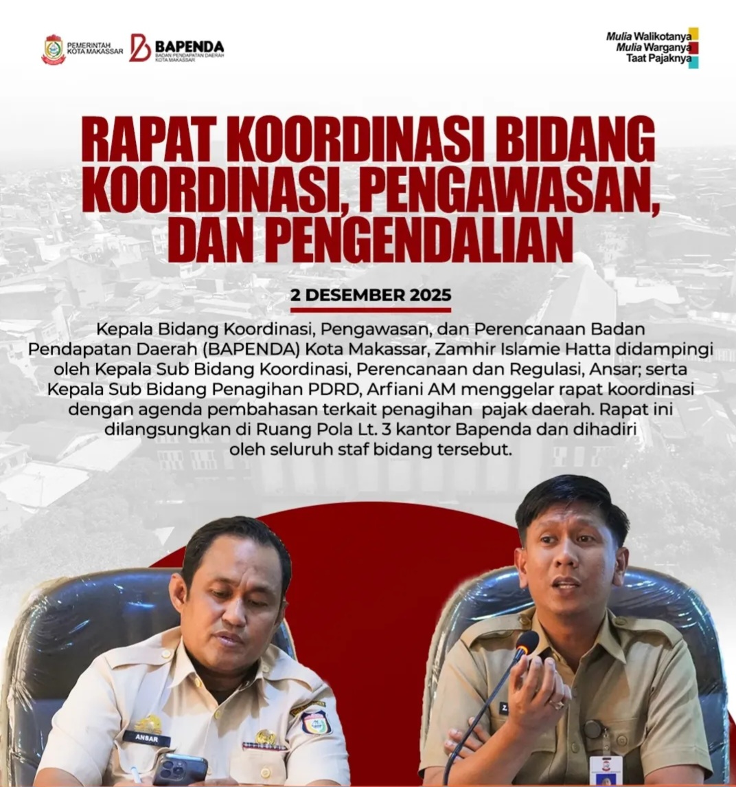 Bapenda Makassar, Rapat koordinasi Dengan Agenda Pembahasan Terkait Penagihan pajak Daerah