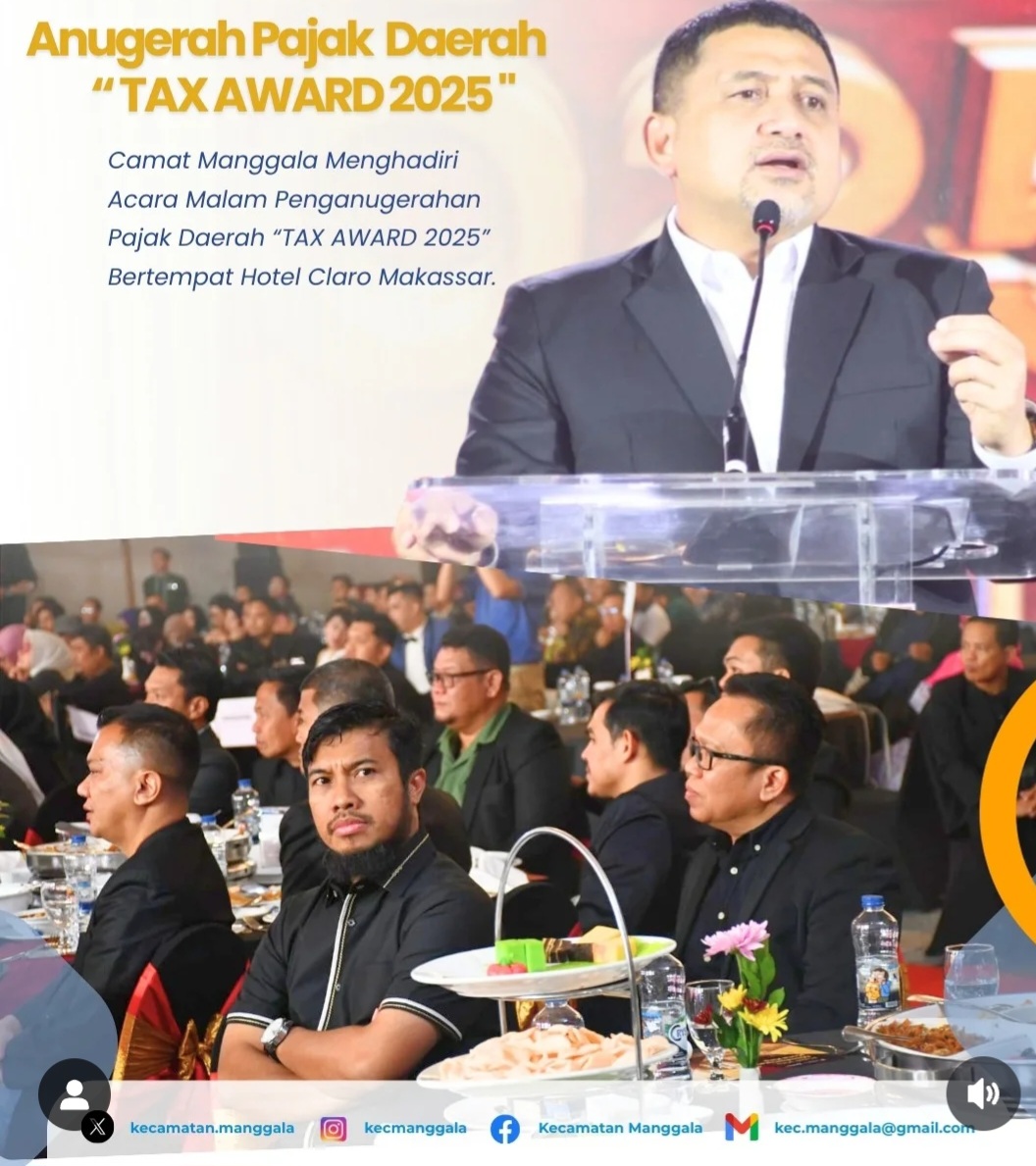 MAKASSAR.portalcelebes.com- Camat Manggala Andi Eldi Indra Malka, S.STP., MM menghadiri kegiatan Apresiasi Penghargaan Anugerah Pajak Daerah Kota Makassar Tahun 2025 yang dipimpin langsung oleh Wali Kota Makassar, Munafri Arifuddin, S.H. Acara berlangsung di Hotel Claro, Convention Center Ballroom Phinisi.