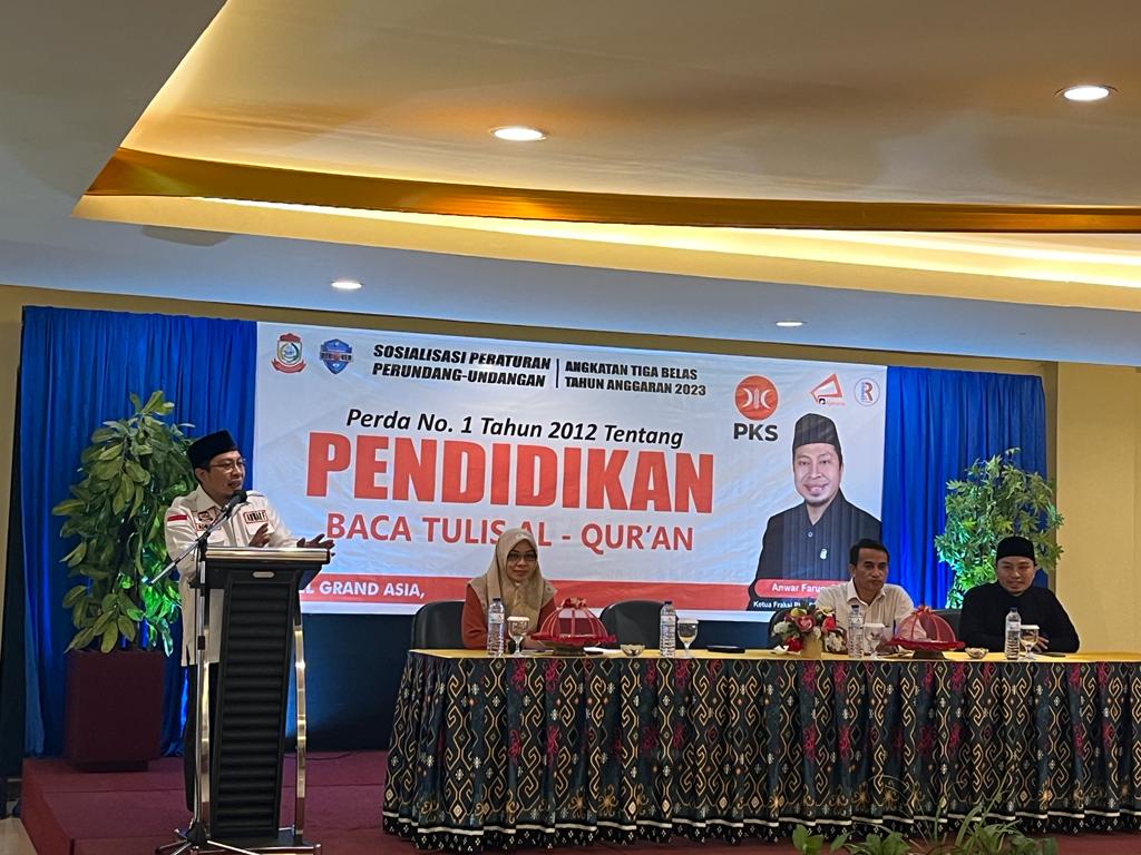 MAKASSAR,portalcelebes.com-Anggota DPRD Kota Makassar, Anwar Faruq menggelar sosialisasi Peraturan Daerah (Perda) Nomor 1 Tahun 2012 tentang Pendidikan Baca Tulis Alquran, di Hotel Grand Asia, Kamis (09/11/2023).
