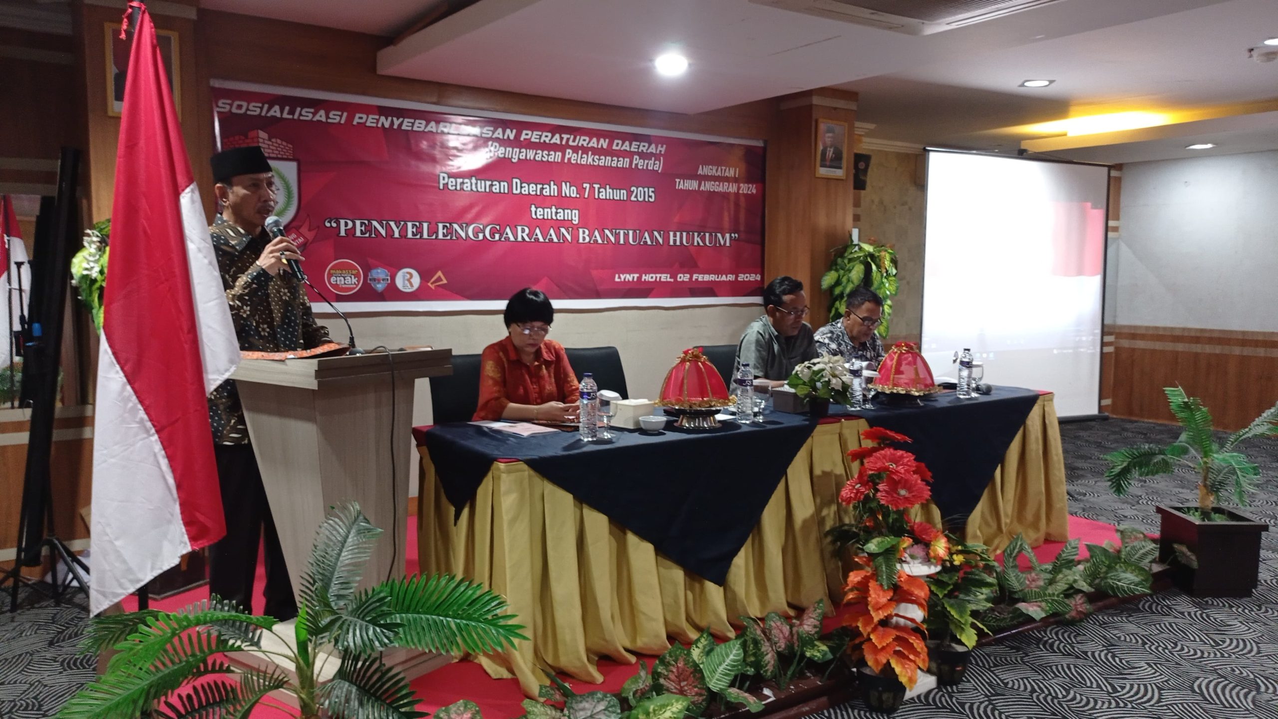 MAKASSAR,portalcelebes.com-Anggota DPRD Kota Makassar, Anton Paul Goni menggelar Sosialisasi Peraturan Daerah (Perda Nomor 7 tahun 2015 tentang Penyelenggaran Bantuan Hukum,Angkatan Pertama Tahun anggaran 2024 di LYNT Hotel , Jumat Pagi (02/02/2024).