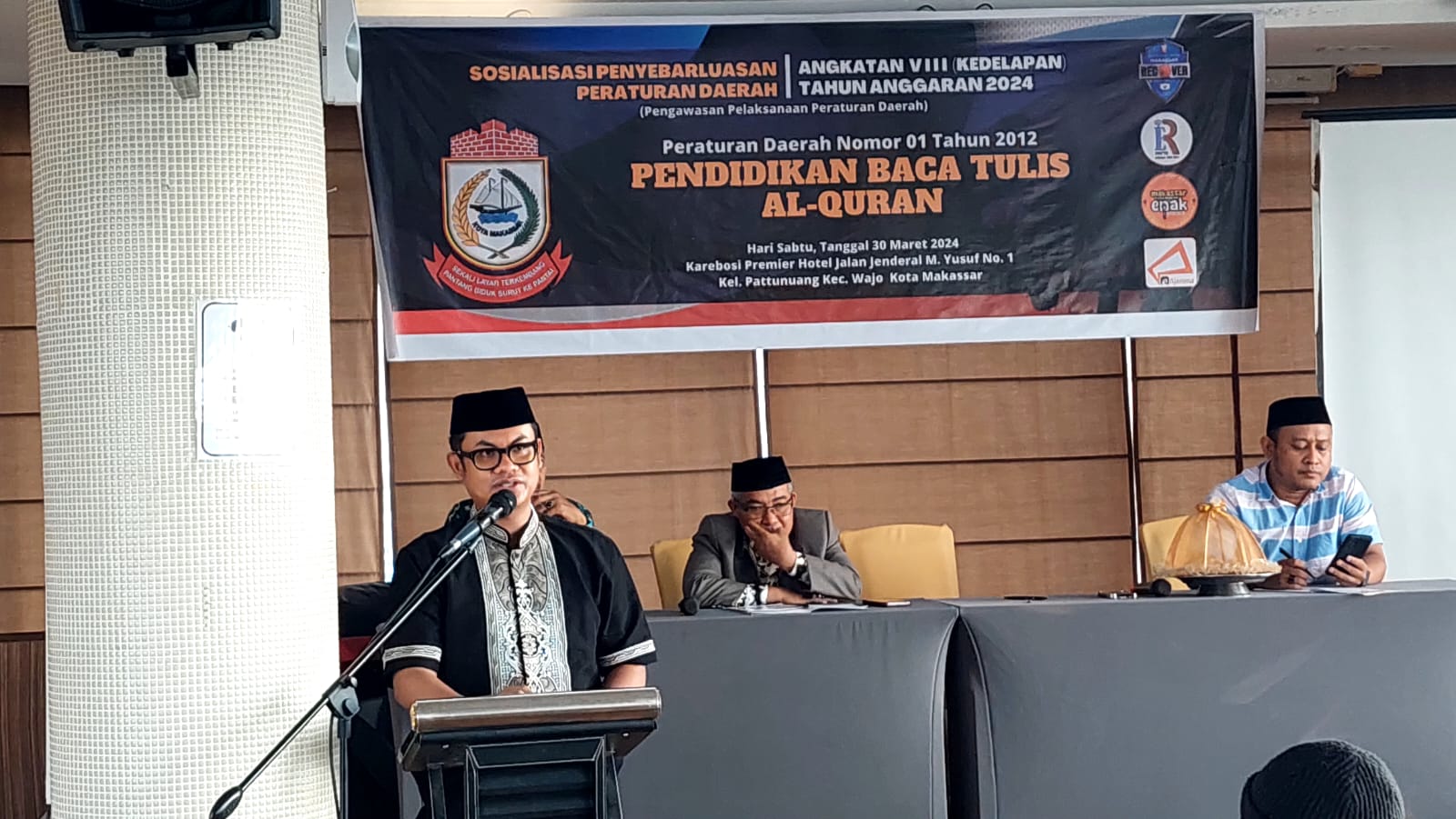 MAKASSAR,portalcelebes.com- Berangkat dari keprihatinan terhadap masih banyaknya umat Islam yang buta aksara baca tulis Al-Quran, Anggota DPRD Kota Makassar dari Fraksi Demokrat , Ray Suryadi Arsyad menggelar dialog penyebarluasan Sosialisasi Peraturan Daerah nomor 1 tahun 2012, tentang Baca Tulis Al-Quran.
