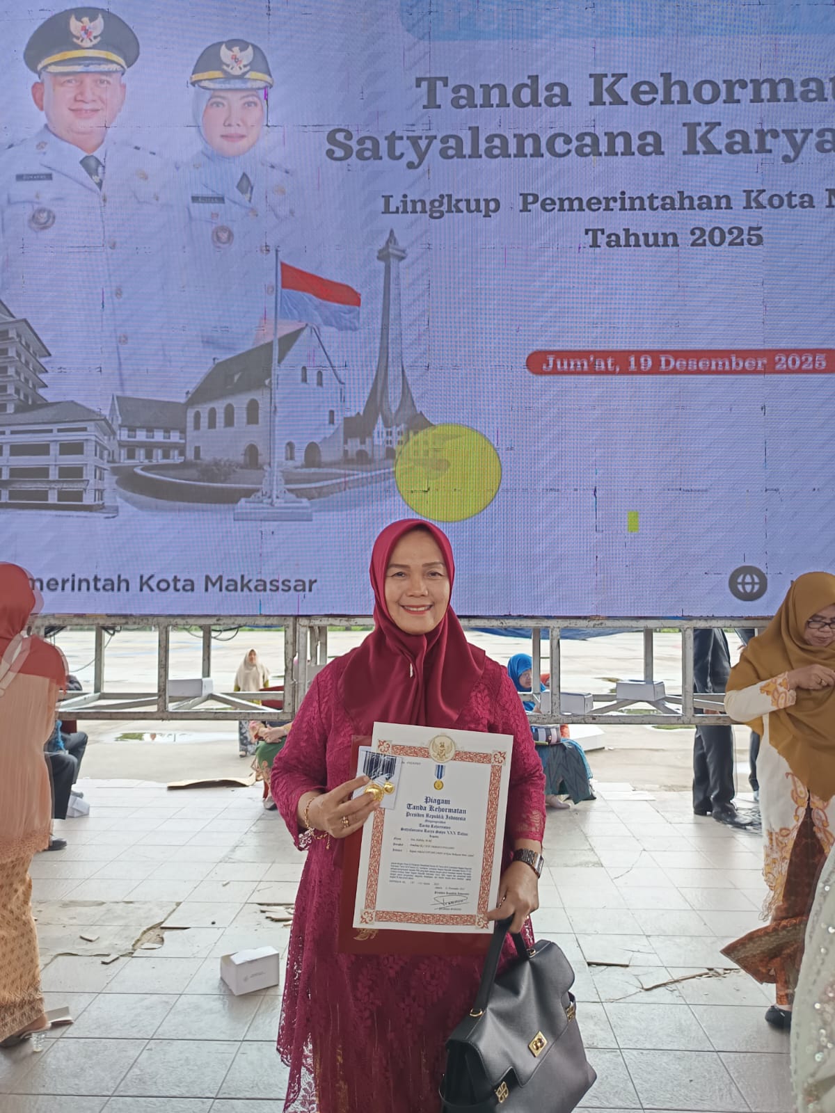 MAKASSAR.portalcelebes.com- Bertempat di Tribun Lapangan Karebosi Makassar. Kepala SMPN 54 Makassar, Hj.Habibah S. Pd,m.pd menerima Tanda Kehormatan Satyalancana Karya Setya 2035. Jum’at (19/12/25)