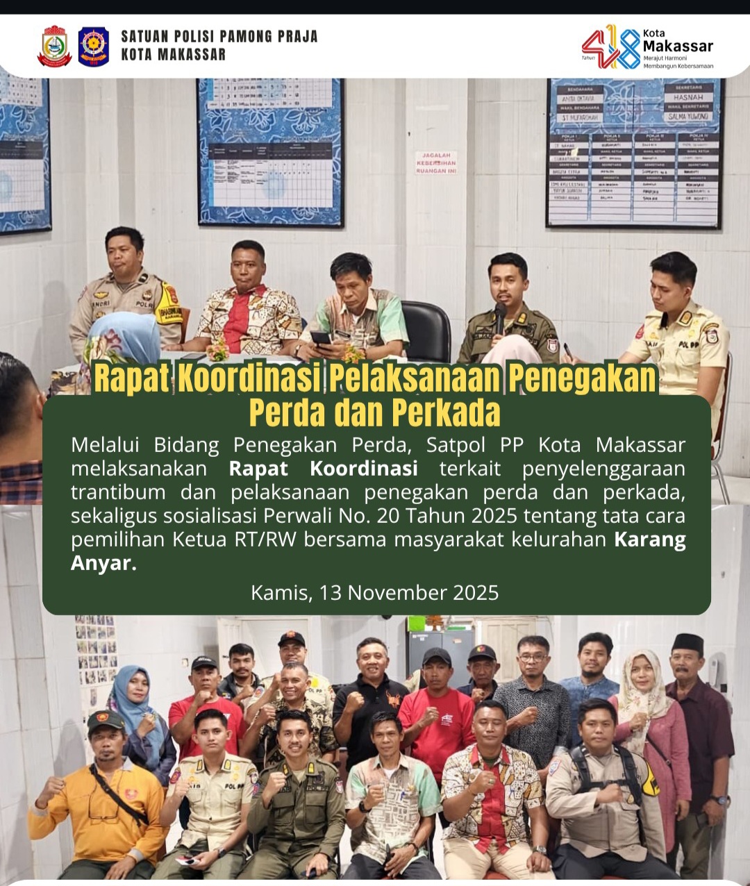Tujuan dari kegiatan ini adalah untuk menyamakan persepsi, meningkatkan koordinasi dan memperkuat kolaborasi dalam pelaksanaan tugas di lapangan. Pada kesempatan ini juga sekaligus mensosialisasikan Peraturan Wali kota Makassar no 20 tahun 2025 tentang tata cara pemilihan ketua RT RW.