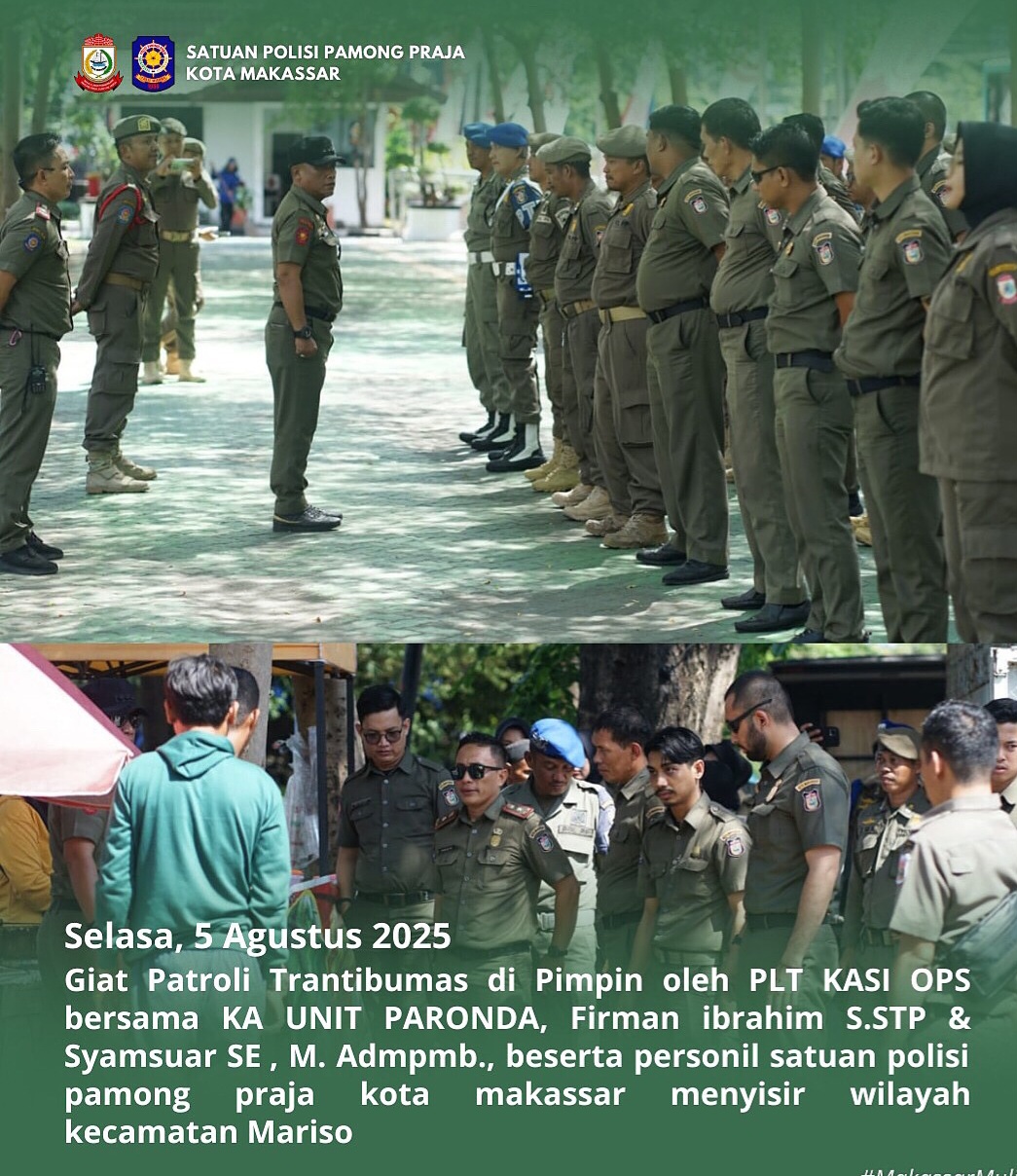 MAKASSAR.portalcelebes.com- Patroli Trantibum disepanjang Jin Cenderawasih dan Jin Nuri dipimpin oleh Plt Kepala Seksi Operasi dan Pengendalian, Firman Ibrahim, S.STP. Selasa,5/8/2025