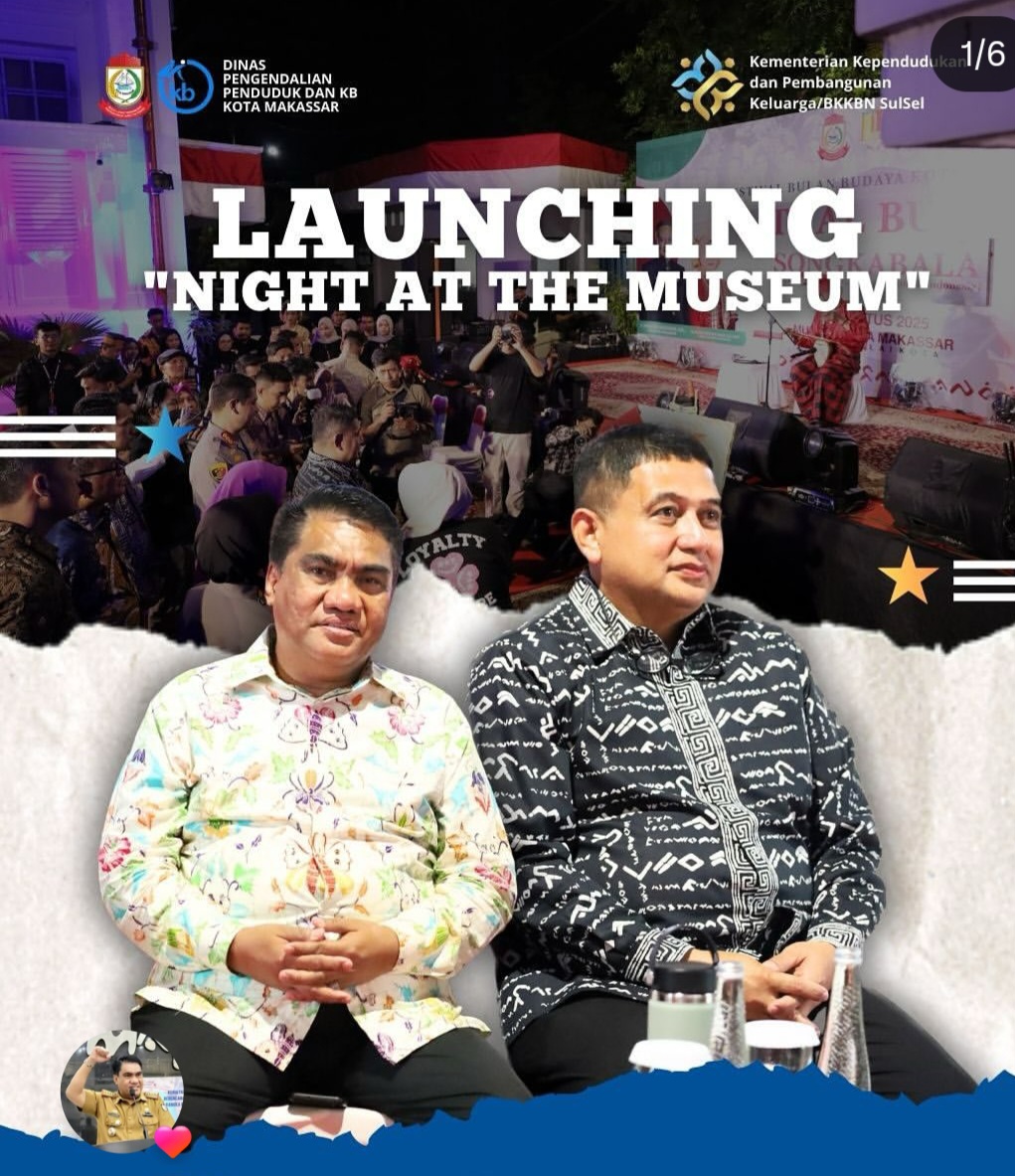 MAKASSAR.portalcelebes.com- dppkbmakassar Kepala Dinas Pengendalian Penduduk dan Keluarga Berencana (PPKB) Kota Makassar, Drs. A. Irwan Bangsawan, M.Si menghadiri acara puncak Festival Bulan Budaya Kota Makassar yang digelar di Museum Kota Makassar, Kamis malam (14/2025). Acara yang mengusung tema Sepanjang Masa ini turut dirangkaikan dengan peluncuran program Night at the Museum, yang menandai dimulainya operasional museum di malam hari untuk publik. Hadir pula dalam kegiatan ini seluruh unsur pejabat pemerintah Kota Makassar, termasuk jajaran kepala OPD, tokoh masyarakat, pelaku seni budaya, serta tamu undangan lainnya.