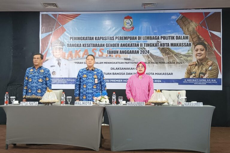 MAKASSAR,portalcelebes.com-Upaya pemerintah dalam meningkatkan peran perempuan di bidang politik, maka Badan Kesatuan Bangsa dan Politik menggelar kegiatan Peningkatan Kapasitas Perempuan di Lembaga Politik dalam Rangka Kesetaraan Gender Angkatan II Tingkat Kota Makassar Tahun 2024.