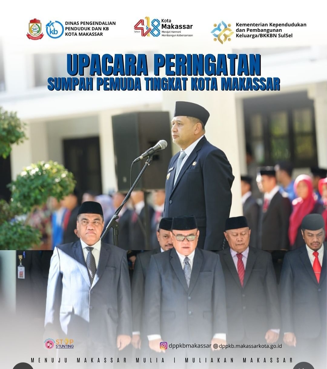 MAKASSAR.portalcelebes.com- Kepala Dinas Pengendalian Penduduk dan Keluarga Berencana (PP dan KB) Kota Makassar, Drs. A. Irwan Bangsawan, M.Si, menghadiri upacara peringatan Hari Sumpah Pemuda ke-97 yang dilaksanakan di halaman Kantor Wali Kota Makassar pada Senin, 28 Oktober 2025.