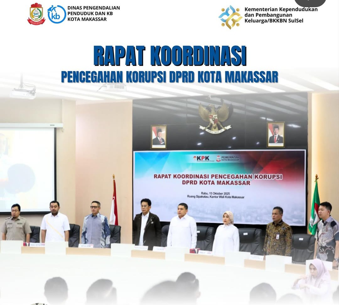 MAKASSAR.PORTALCELEBES.COM-Kepala Dinas Pengendalian Penduduk dan Keluarga Berencana (PP dan KB) Kota Makassar, Drs. A. Irwan Bangsawan, M.Si, turut menghadiri Rapat Koordinasi Pencegahan Korupsi yang diselenggarakan oleh DPRD Kota Makassar bekerja sama dengan Komisi Pemberantasan Korupsi Republik Indonesia (KPK RI). Kegiatan ini berlangsung di Ruang Sipakatau, Kantor Wali Kota Makassar.