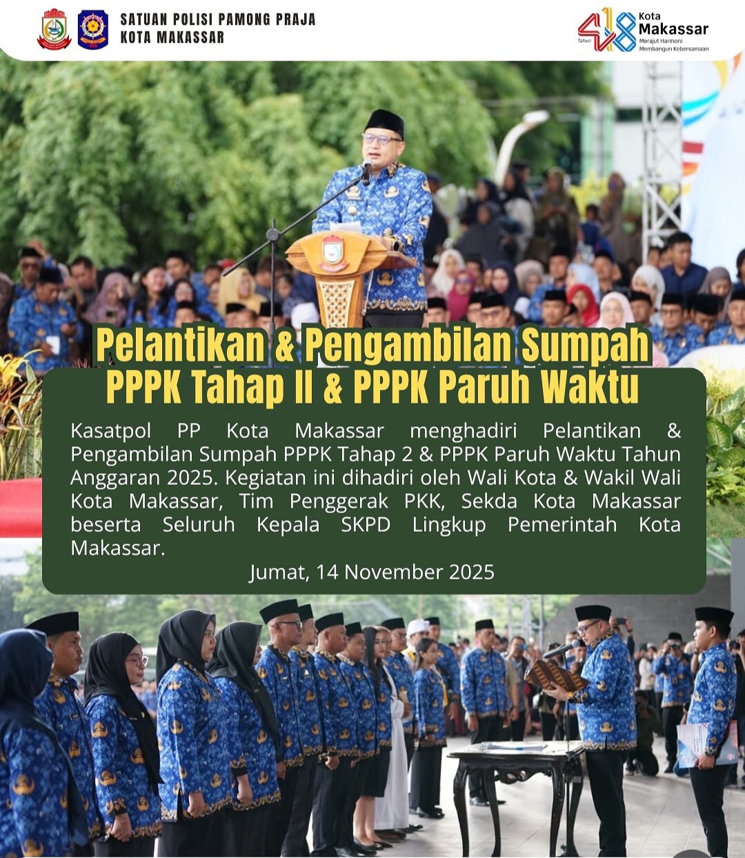 MAKASSAR.portalcelebes.com- Selamat atas penerimaan SK PPPK Paruh Waktu Lingkup Pemerintah Kota Makassar.