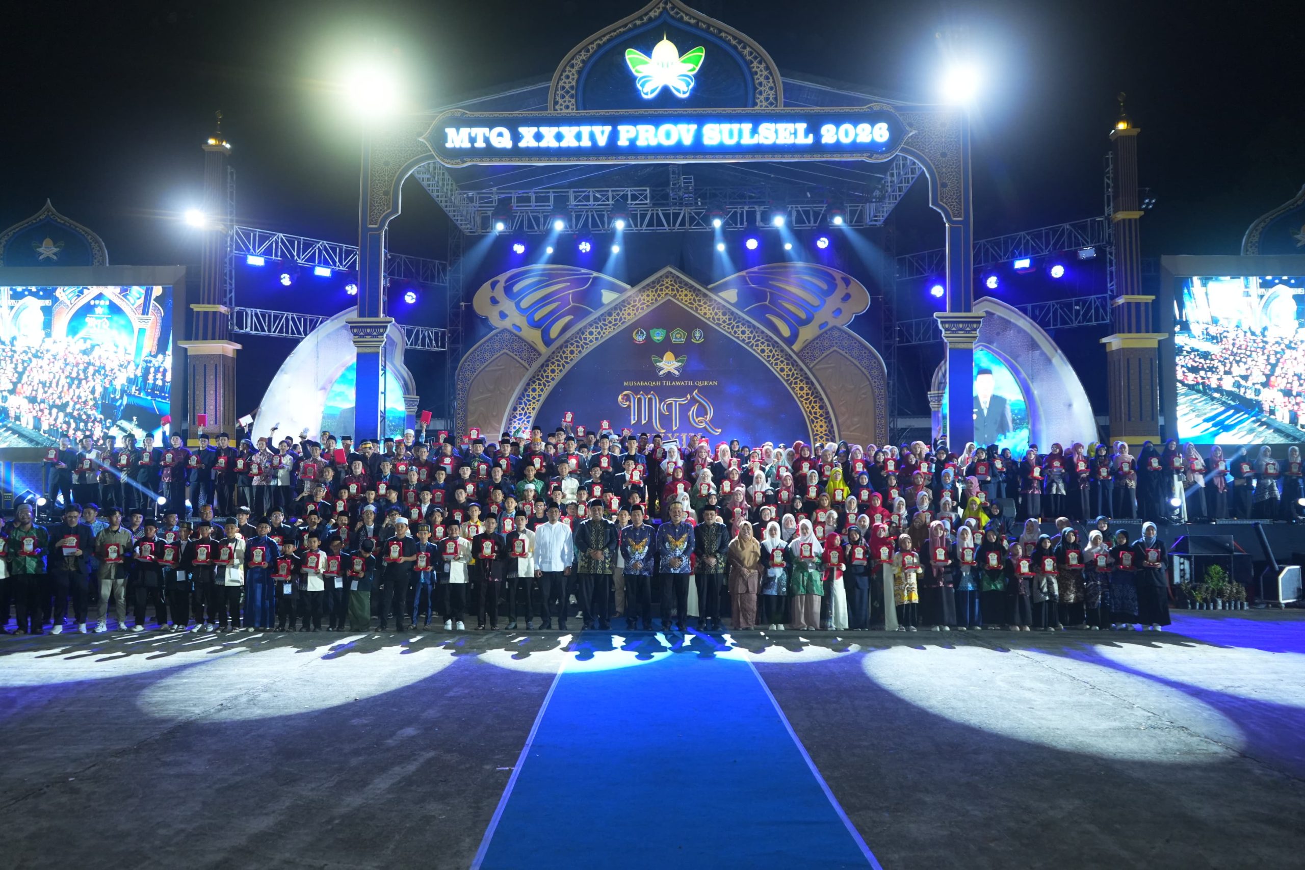 Pengumuman juara umum dibacakan langsung Ketua Tim Lomba MTQ Sulsel, Wahyadi Syarifuddin, saat acara penutupan berlangsung di Lapangan Pallantikang, Kabupaten Maros, Sabtu malam, 18 April 2026.